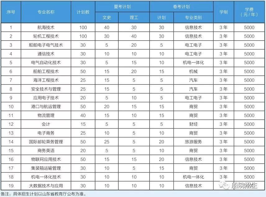 2019年青岛远洋船员职业学院单独招生专业及计划