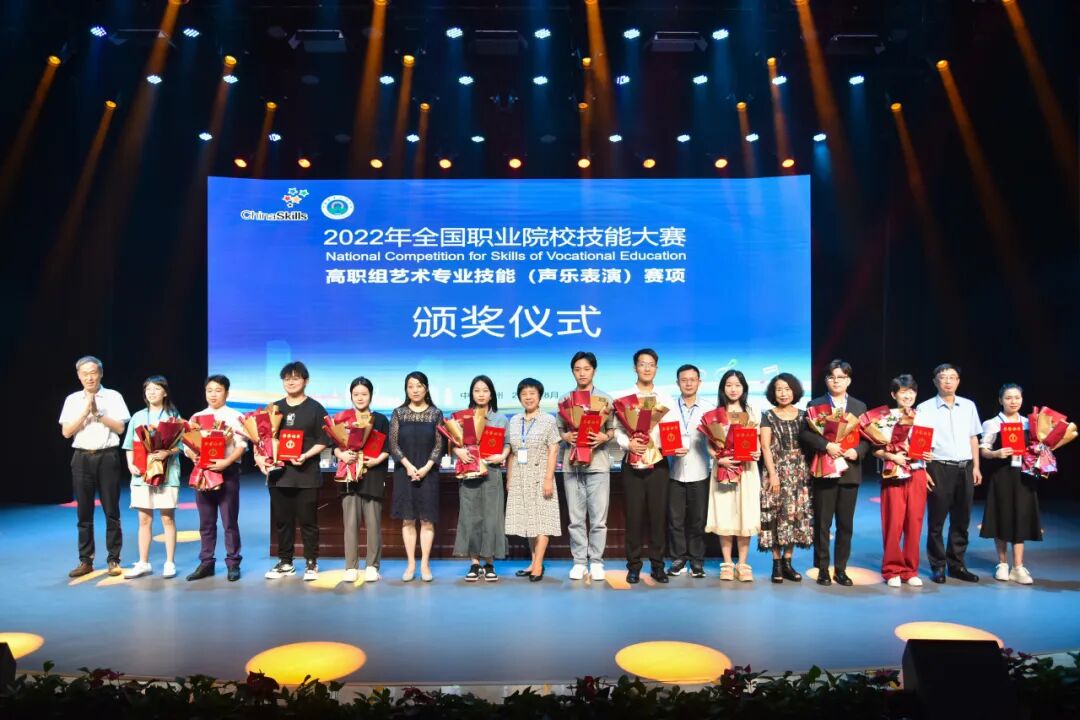全国职业院校技能大赛颁奖现场,学校师生在高职组艺术专业技能(声乐表演)赛项比赛中荣获二等奖。