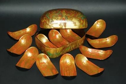 “童年时候我就十分喜欢欣赏红药水在太阳下金光闪亮的感觉,常用它来画红旗和太阳的红色光芒。我还清晰地记得,小学时看到裱画案子上所髹涂的朱漆,令我兴奋不已。”也许就是这份对红色的钟爱让周剑石走上了学习和创作漆艺的生涯。这个被朱红漆所吸引的年轻人在1983年还是中央工艺美术学院一名学生的时候,与4名同学利用暑期远赴四川甘孜、玛尼干戈,亲历了当地藏族同胞骑马射箭、跳藏戏等庆贺藏历新年的激动场面。他画了许多素描写生,回到学校后,别出心裁的用漆艺材料、技法与装饰画的形式,创作表现了藏族新年传统民俗节日上骑马射箭的片段“耍靶子”。作品画面选用白色蛋壳、朱漆、黑漆、绿漆和金属粉等,藏族服饰色彩,人物和场景表现的简约而富有想像力,获得了第六届全国美展优秀奖。